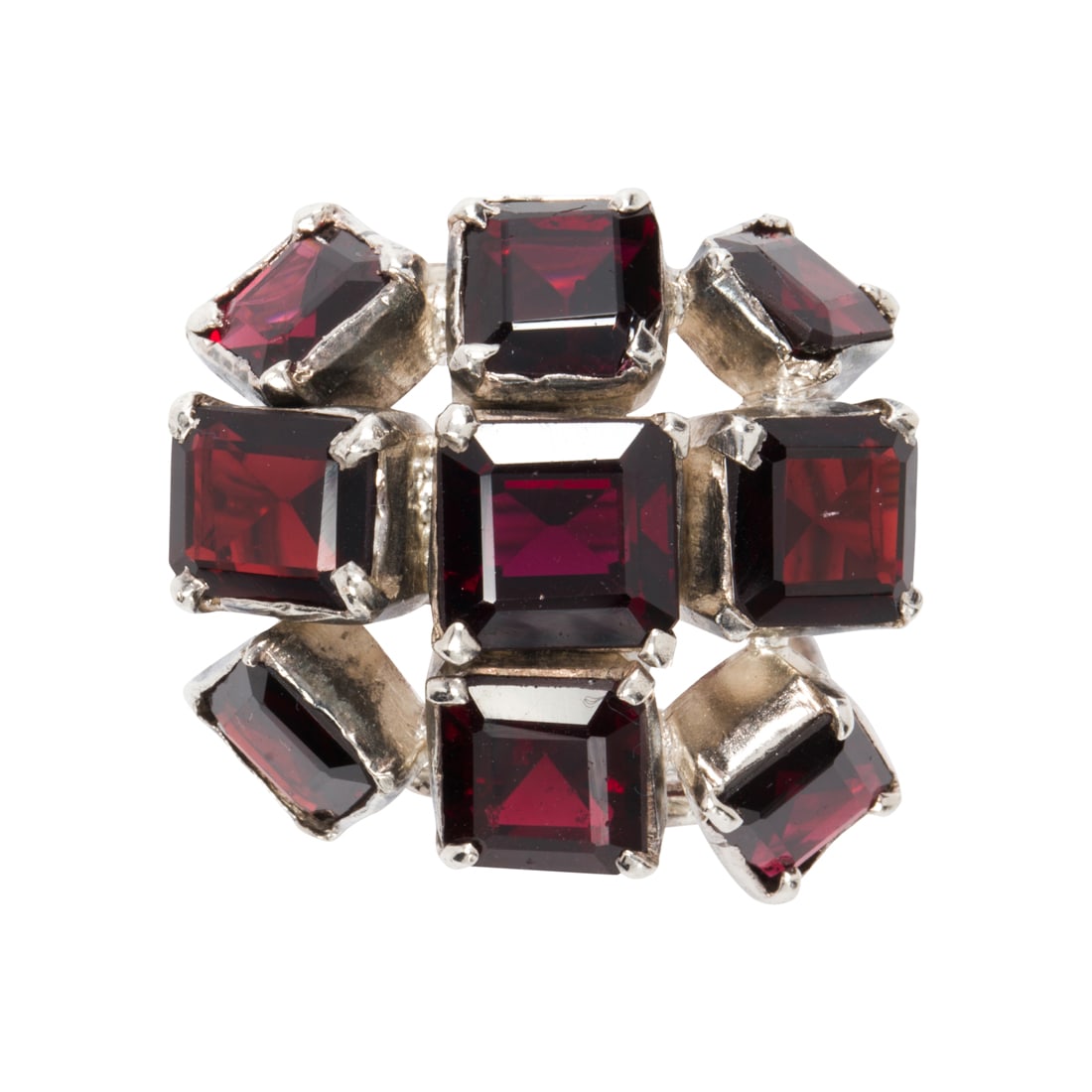 A garnet and silver ring
