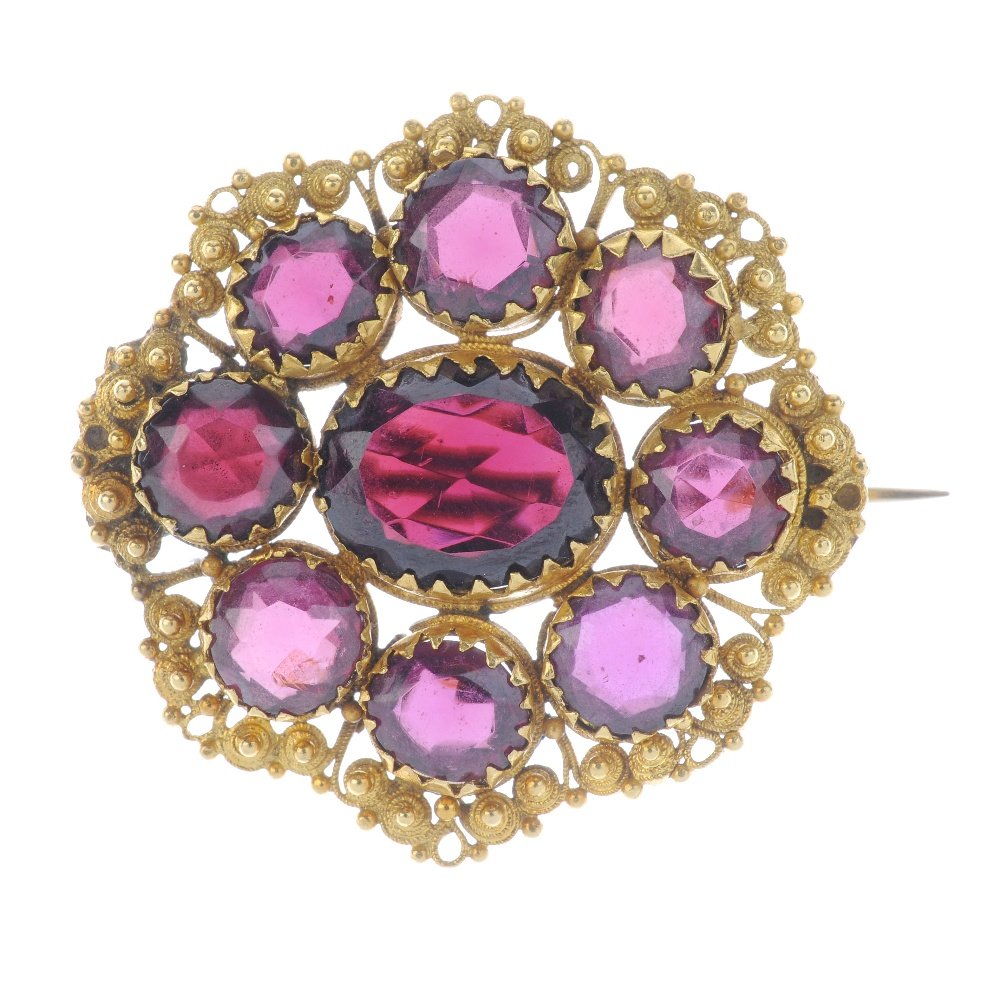A garnet brooch. The oval-shape garnet, with