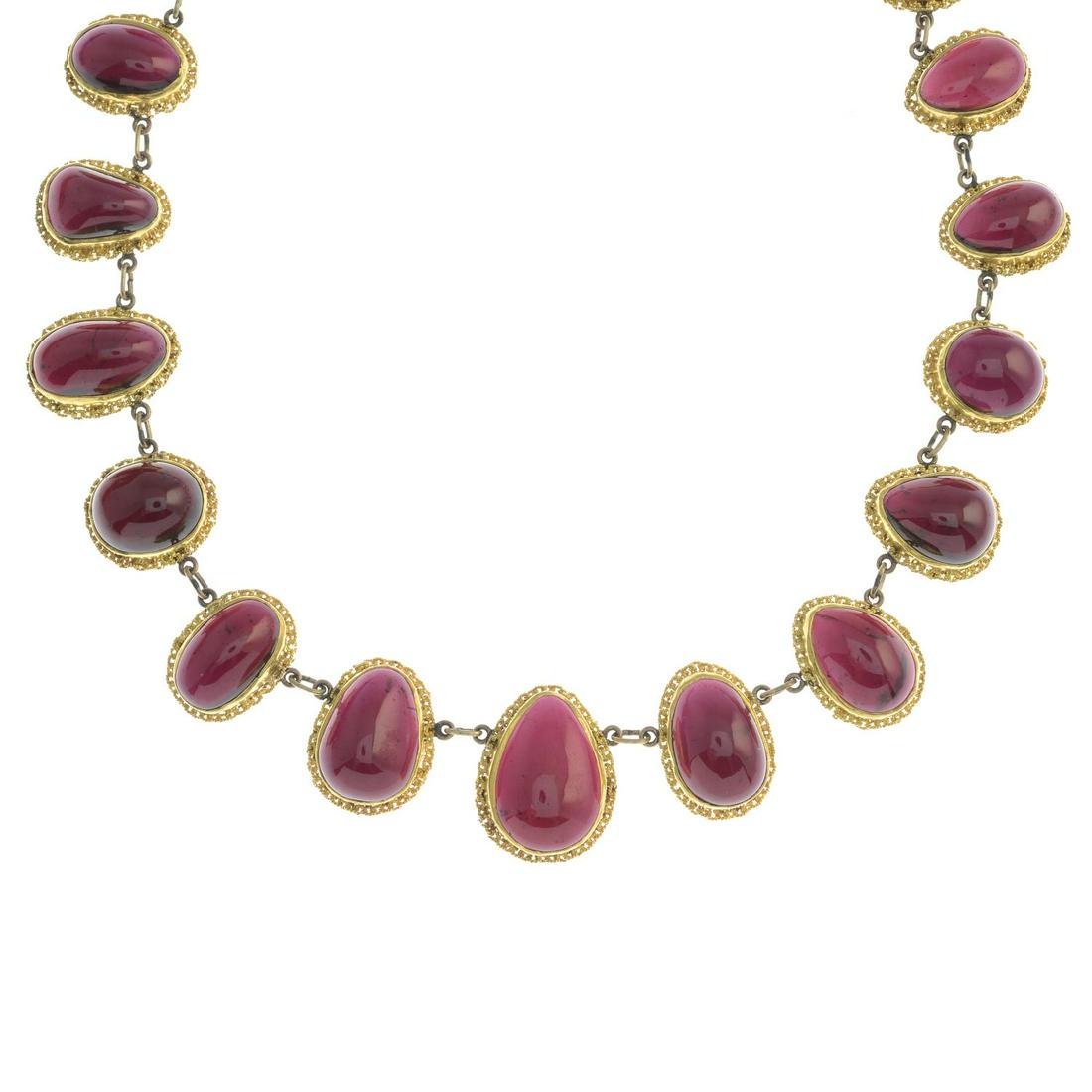 A garnet necklace.Length 40.5cms. 85.5gms.
