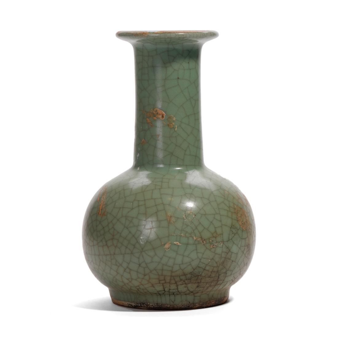 SoldA Ge-Type Bottle Vase with Fine Crackles拟哥窑青灰釉悬胆瓶 A Ge-Type Bottle Vase with Fine Crackles Height: 5¾ in (14.6 cm)See Sold Price
