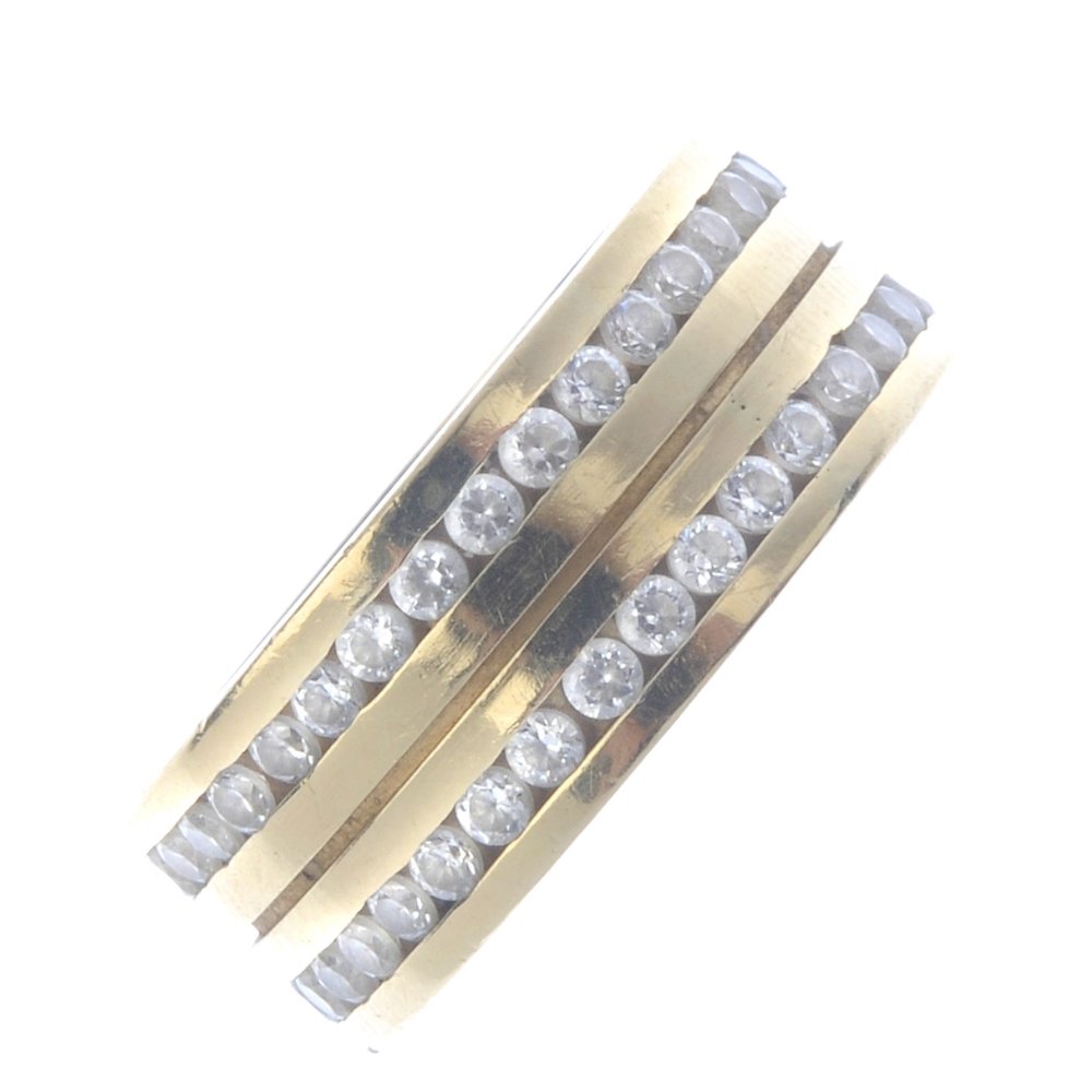 A Gem Set Band Ring. Comprising Two Circular Shape