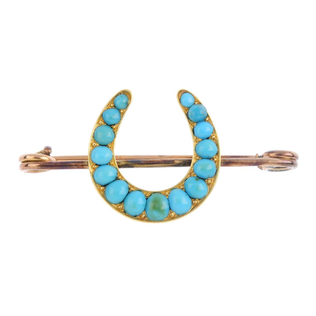 A gem-set brooch and earrings. To include a turquoise
