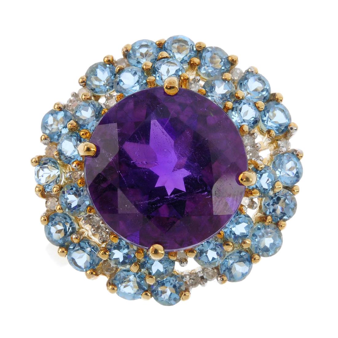 14k Gold 13.65ct Amethyst 1ct Diamond Ring