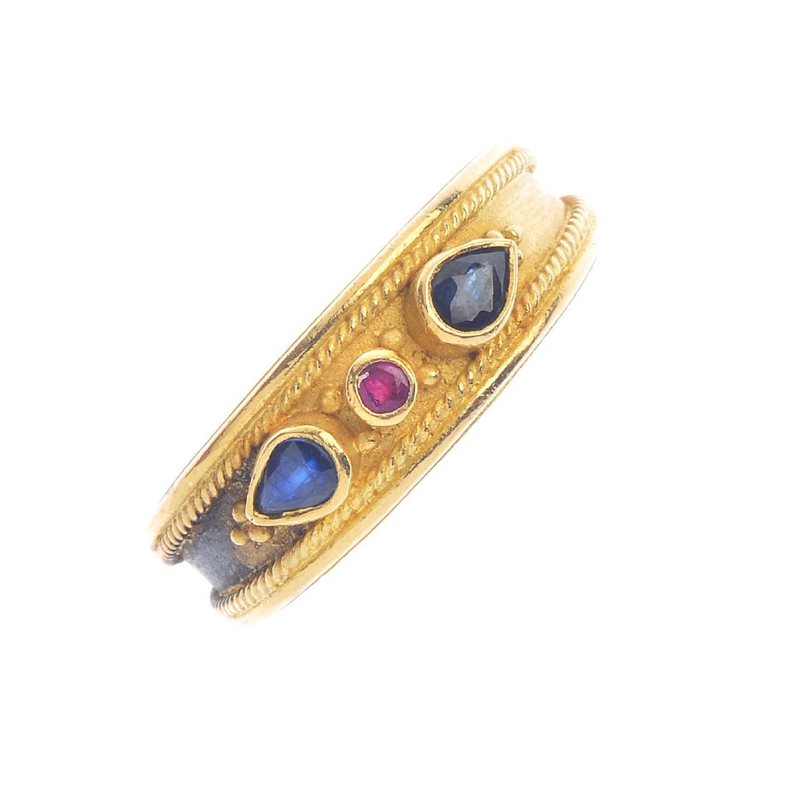 A gem-set dress ring. The alternating pear-shape