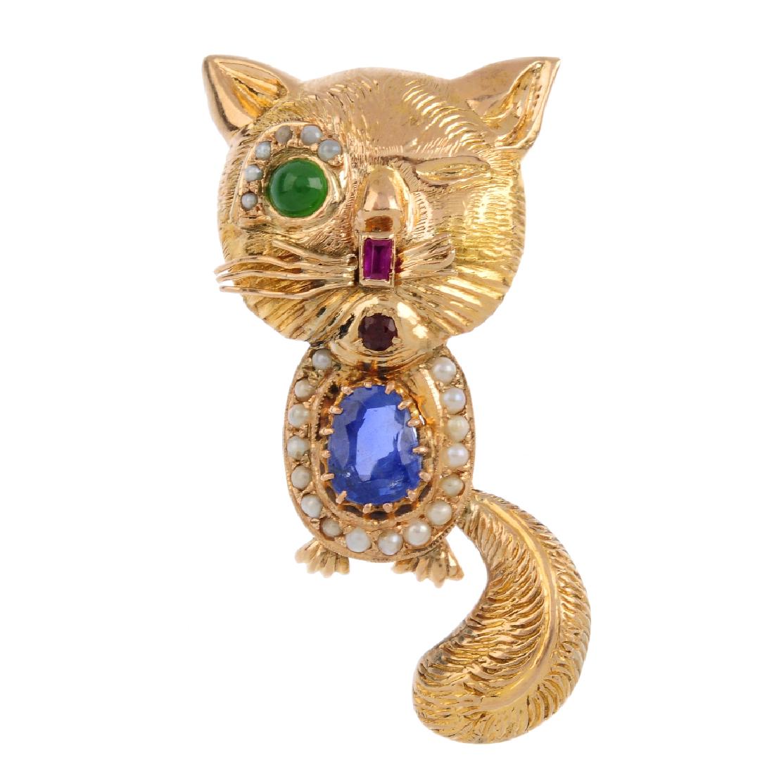 Whimsical Lion Cat Brooch in 18K Yellow Gold with Diamonds Sapphires and EmeraldsBidhaus4.2(845)$1005 hrs Left