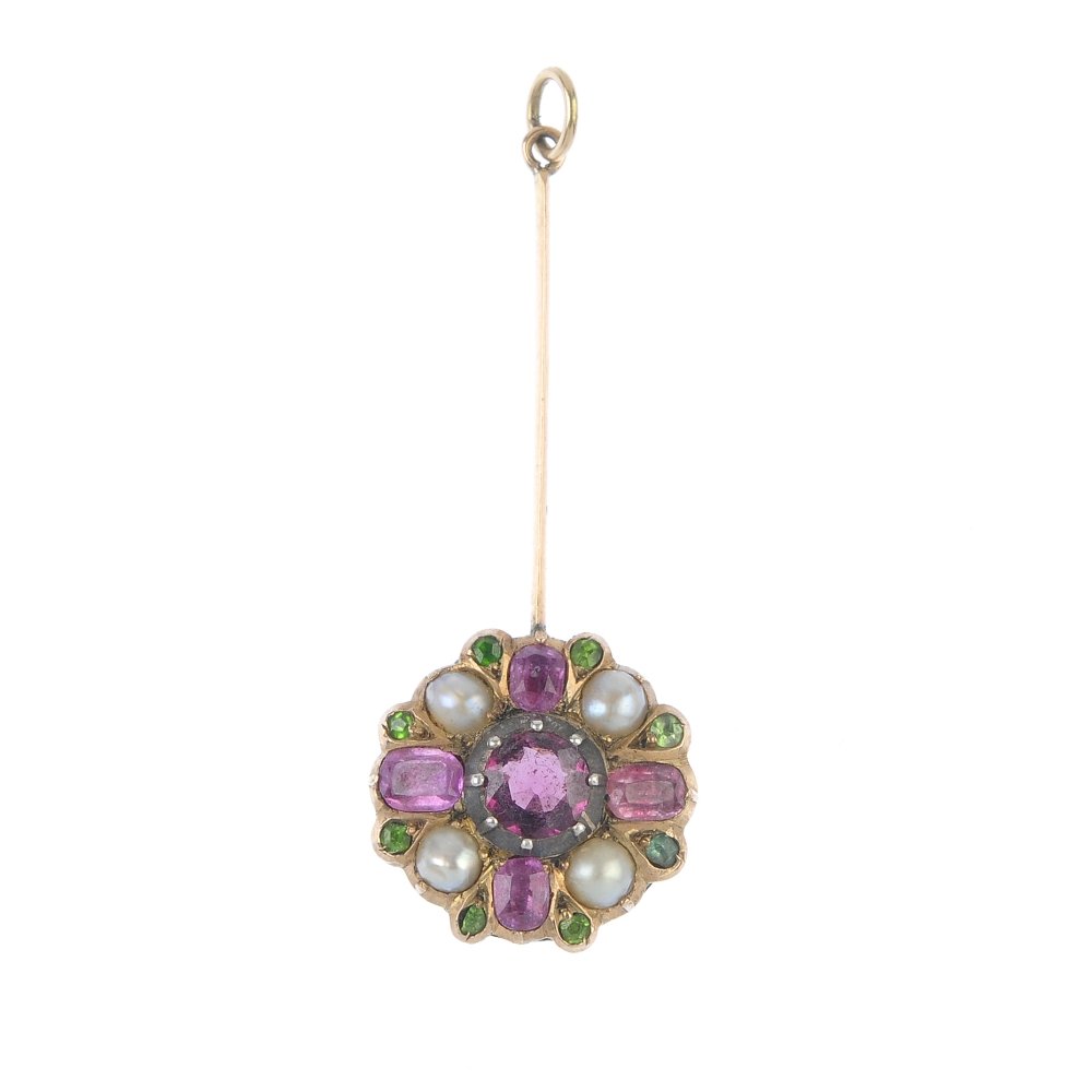 A gem-set pendant. The late 19th century garnet, split