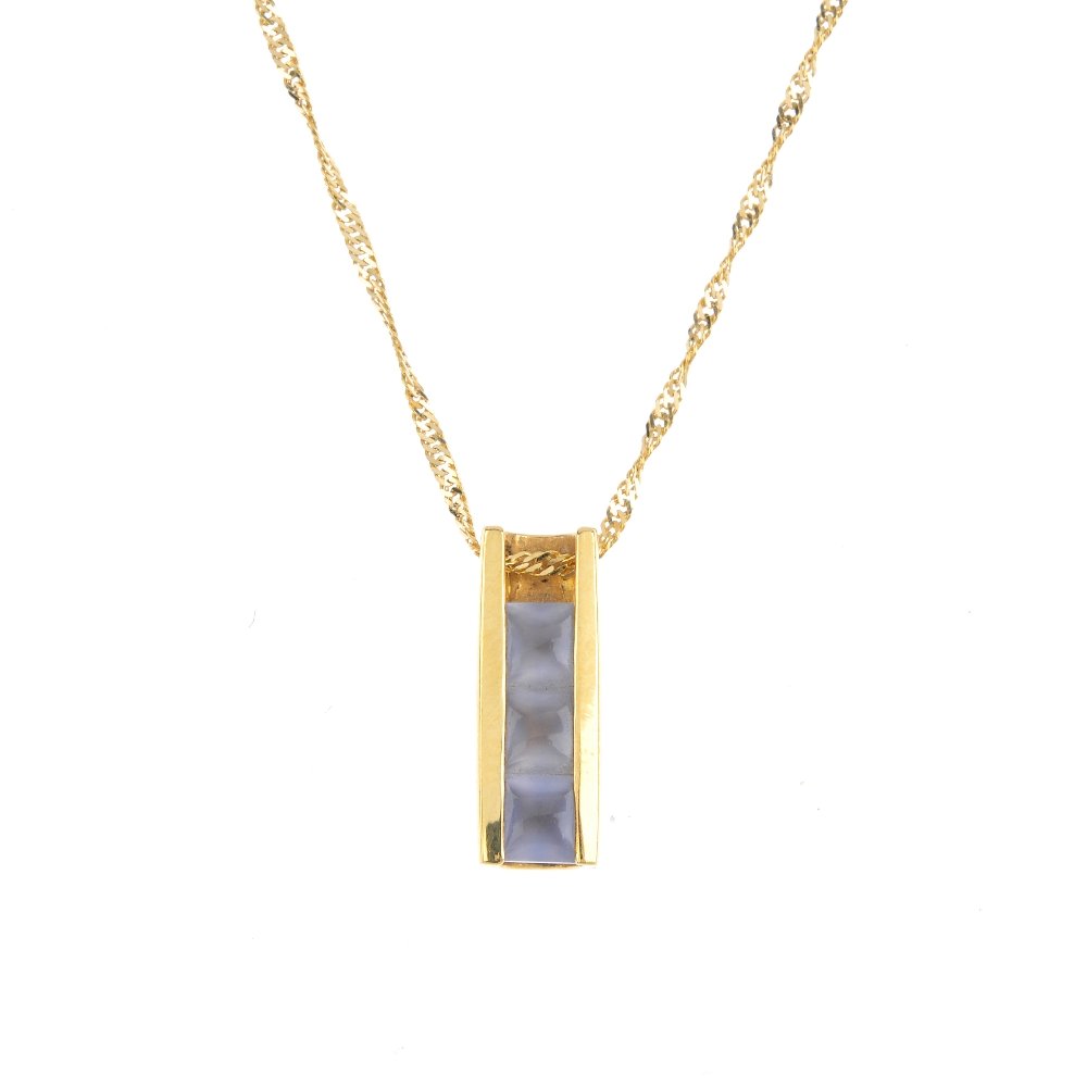 A gem-set pendant. The square-shape blue chalcedony