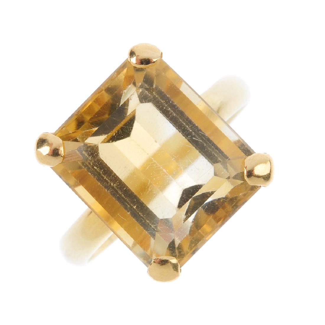 SoldGold, Silver, and Gem-Set RingGold, Silver, and Gem-Set Ringdesigned in a square silver tablet form with prong set oval cut citrine and peridot stones, with full cut round diamonds weighing approximately .85 total carat (K-M colorSee Sold Price