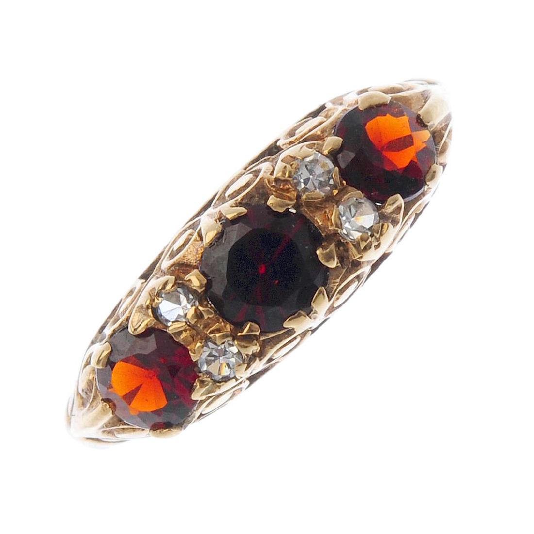 A gem-set ring. The graduated circular-shape garnet