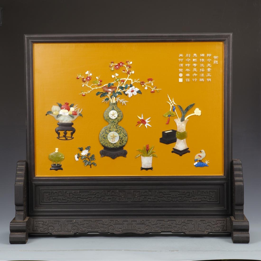 A GEMSTONES INLAID LACQUERWARE TABLE SCREEN