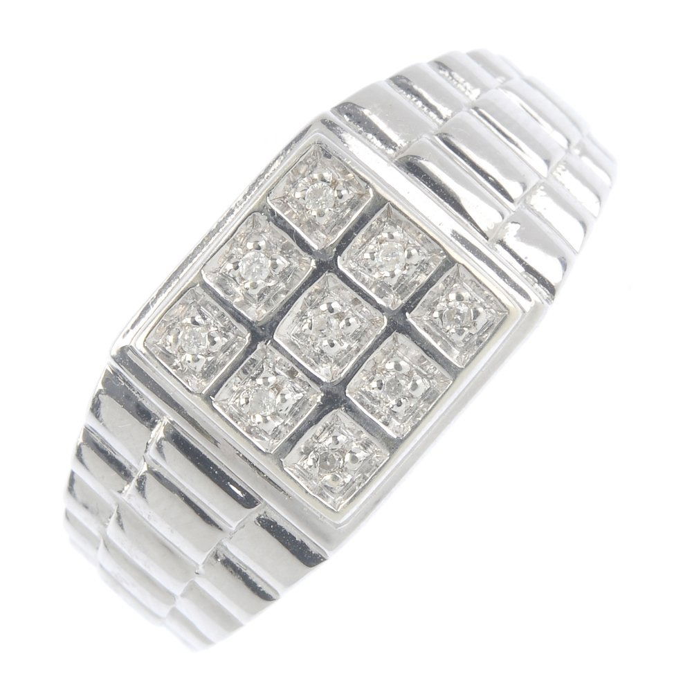 A gentleman's 9ct gold diamond ring. Comprising nine