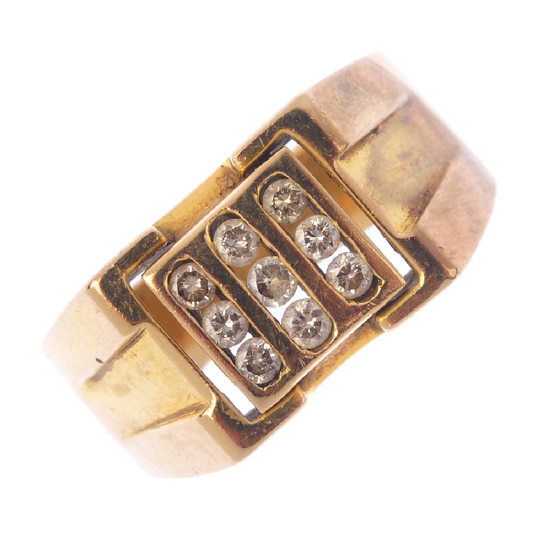 A gentleman's diamond signet ring. Comprising three