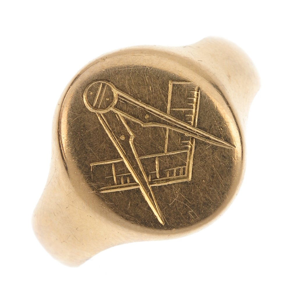 Gold Band Masonic Ring with Diamond, Size 10 1/2 6 g 1 PC