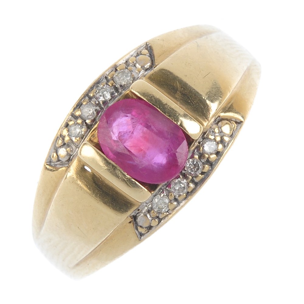 A gentleman's ruby and diamond ring. The oval-shape
