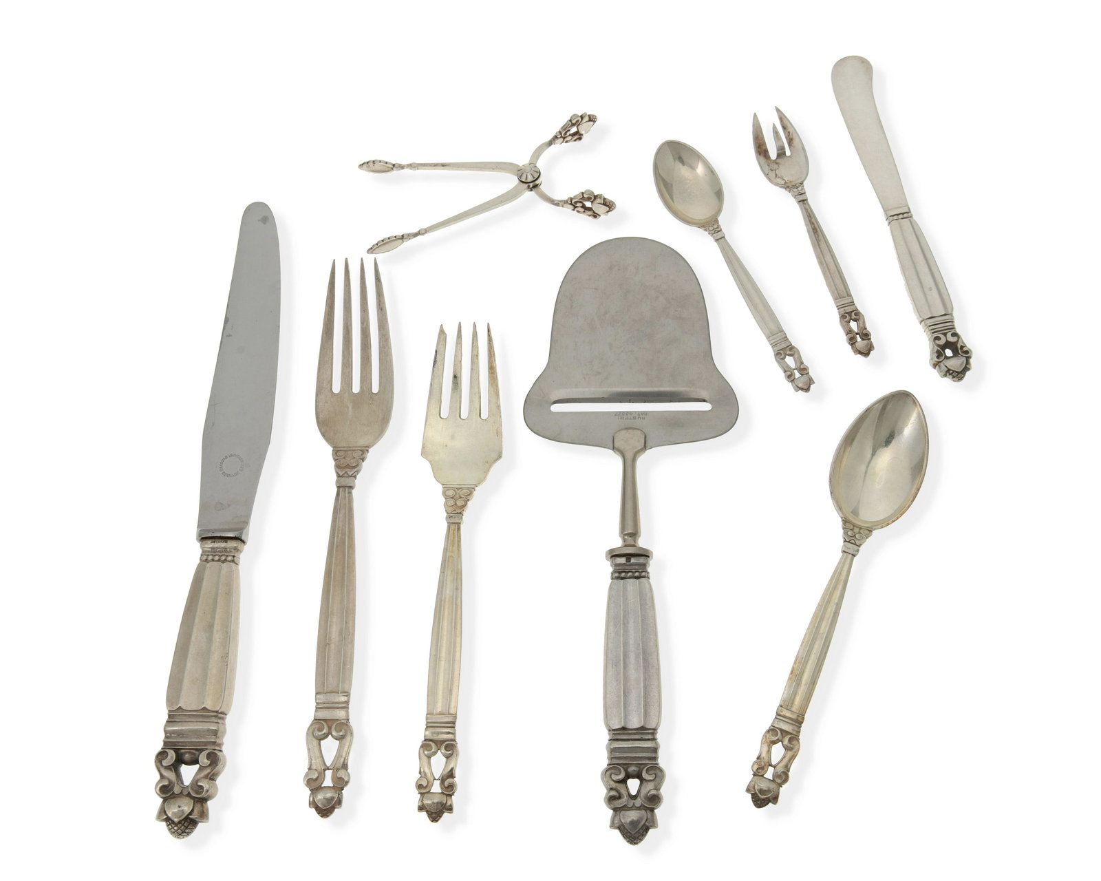 A Georg Jensen "Acorn" sterling silver flatware service