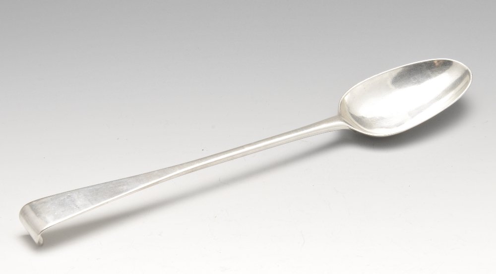 A George II silver hook-ended basting spoon, having an