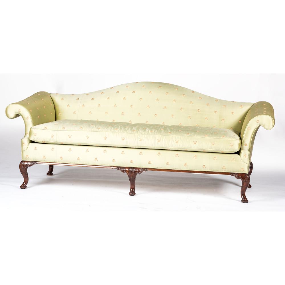 A George II-style Walnut Camelback Sofa