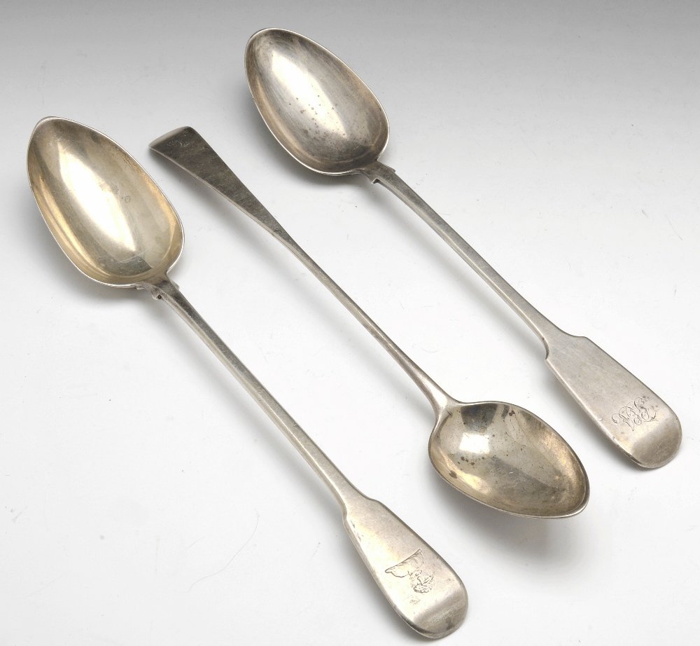 A George III Edinburgh silver basting spoon & two