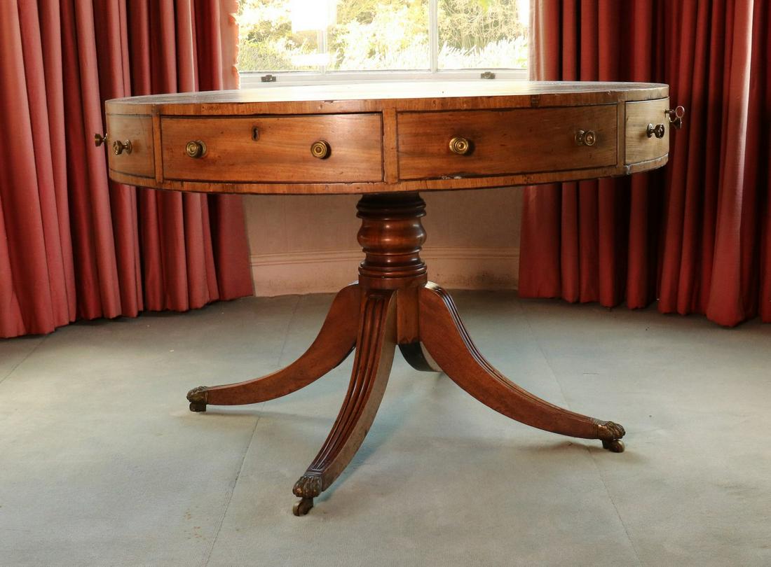 Regency Style Double Pedestal Mahogany Dining Table6 days LeftAn Antique Regency Style Drum Table6 days LeftGeorge III Mahogany Pembroke TableMahogany Round Drum Table With Leather Inlay and DrawersMar 01, 2026John Stuart George IV Style Leather Top Mahogany Desk / Library Table1 day LeftA large George III style mahogany drum table, 20th century5 days LeftMahogany One Drawer Drop Leaf TableMar 04, 2026Fine English George III Adams Style Paint Decorated Mahogany Pembroke TableFeb 28, 2026Cherry Drop Leaf One Drawer Table By StattonMar 04, 2026English Regency Leather Top Mahogany Drum TableMar 07, 2026A Louis XVI style brass mounted mahogany bureau plat, 19th century5 days LeftExcellent American Federal Carved & Figured Mahogany Breakfast TableFeb 28, 2026Salem, Mass. Chippendale Mahogany Dining TableMar 14, 2026Cherry Queen Anne Style One Drawer End TableMar 04, 2026George III Mahogany Demilune Pier TableMar 05, 2026Louis XV Style Bronze Mounted Mahogany Writing TableMar 12, 2026