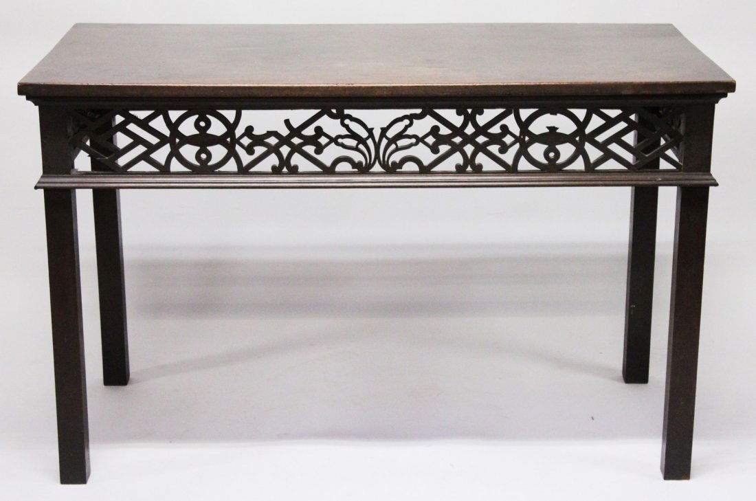 George III Mahogany Side Table, c. 1800Feb 25, 2026A MAHOGANY FRET-CARVED SILVER TABLE, 19TH CENTURY, OF GEORGE III STYLEMar 03, 2026An Irish George III mahogany silver table Circa 1760Chippendale Carved and Figured Mahogany Tea TableFeb 24, 2026Empire Style Mahogany Dining Table 20th Cent., H 30" W 44" L 72"4 days LeftChinese Altar TableFeb 22, 2026Chippendale Style Mahogany Two Pedestal Dining Table, 2 Leaves 20th Cent., H 30" W 44" L 76"4 days LeftFrench Louis XV Style Mahogany Writing Table, 20th c., H.- 29 1/4 in., W.- 41 1/4 in., D.- 19 3/4Feb 27, 2026ANTIQUE CHIPPENDALE MAHOGANY WRITING TABLE.Feb 25, 2026George III leather top mahogany writing table4 days LeftItalian Renaissance Style Parquetry Inlaid Mahogany Drop leaf TableFeb 27, 2026Majestic Regency Italian Mahogany Double Pedestal Dining TableMar 01, 2026Kindel Irish Georgian Mahogany Tea TableFeb 27, 2026Antique George III Game TableExtendable Solid Wood French Parquet Top Dining Table4 days LeftGeorge III Mahogany Demilune Pier TableMar 05, 2026