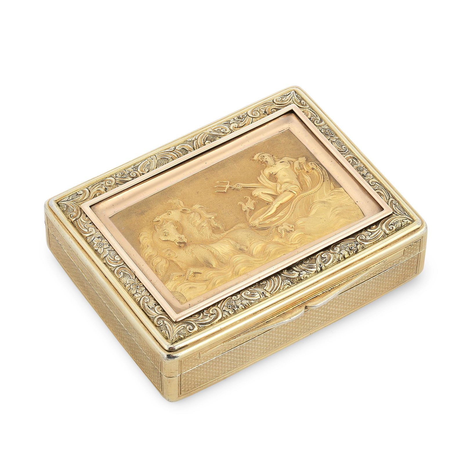 A George IV silver-gilt and gold mounted snuff box Alexander J Strachan, London 1824A LOUIS PHILIPPE RUBY-MOUNTED GOLD SNUFF-BOX MARK OF JOSEPH-NAPOLEON YVOREL, PARIS, 1834-1838Feb 13, 2026A GEORGE III GOLD-MOUNTED AGATE NECESSAIRE WITH GOLD AND GILT-METAL FITTINGS LONDON, CIRCA 1760, INFeb 13, 2026A LOUIS XVIII JEWELED GOLD PRESENTATION SNUFF-BOX MARK OF GABRIEL-RAOUL MOREL, PARIS, 1820Feb 13, 2026A GOLD-MOUNTED MEISSEN PORCELAIN DOUBLE SNUFF-BOX AND COVERS CIRCA 1745-1750Feb 19, 2026A LOUIS XVI VARI-COLOR GOLD SNUFF-BOX PARIS, 1789, MAKER'S MARK UNCLEARFeb 13, 2026A GOLD-MOUNTED GERMAN PORCELAIN RECTANGULAR SNUFF-BOX AND COVER CIRCA 1750Feb 19, 2026A GOLD-MOUNTED GERMAN PORCELAIN RECTANGULAR SNUFF-BOX AND COVER CIRCA 1770-1775, PROBABLY BERLINFeb 19, 2026A Gorgeous Gilt-Silver 'Buddha Shakyamuni' Box With A Scroll Of Buddhist SutrasMar 06, 2026A GEORGE III GEM-SET AND GOLD-MOUNTED AGATE SNUFF BOX SET WITH WATCH AND AUTOMATON LONDON, CIRCAFeb 13, 2026A GOLD OR SILVER-GILT MOUNTED MEISSEN PORCELAIN ELONGATED OVAL SNUFF-BOX AND COVER CIRCA 1760Feb 19, 2026A LOUIS XVI GOLD AND VERRE EGLOMISÉ SNUFF-BOX MARK OF ADRIEN-JEAN-MAXIMILIEN VACHETTE, PARIS,Feb 13, 2026A SWISS PASTE-SET AND ENAMELED GOLD PRESENTATION SNUFF-BOX FOR THE OTTOMAN MARKET CIRCA 1840-60Feb 13, 2026A GOLD-MOUNTED GERMAN PORCELAIN SNUFF-BOX AND COVER 19TH CENTURY, FAINT BLUE CROSSED SWORDS MARK TOFeb 19, 2026AN 18TH CENTUIRY GOLD MOUNTED AGATE SNUFF BOXFeb 17, 2026Whitman's Salmagundi Chocolates Mucha Style Art Nouveau Gold-tone Metal Tin BoxFeb 20, 2026