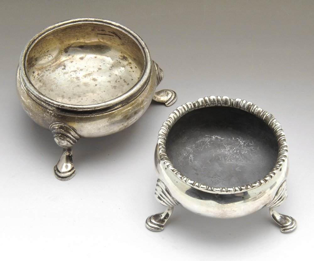 A George III silver open cauldron salt, etc.