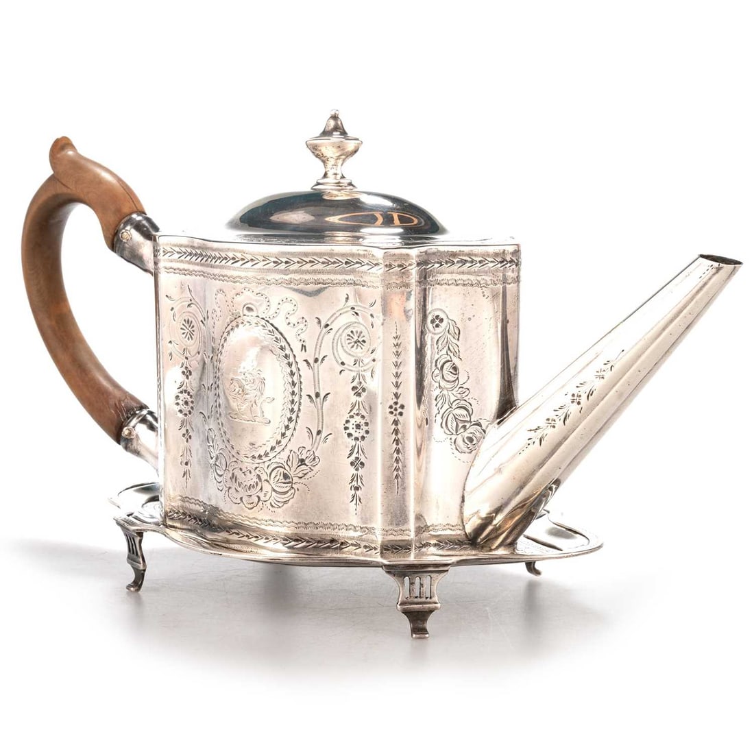 A GEORGE III SILVER TEAPOT AND STAND