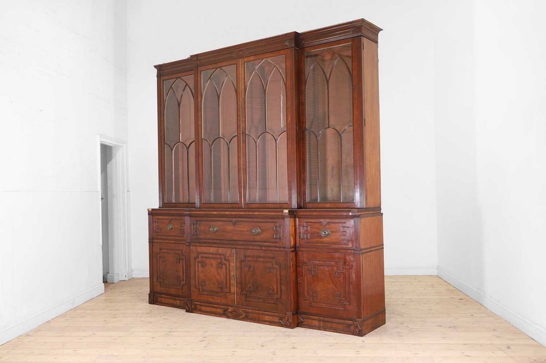 A George IV mahogany breakfront bookcase,