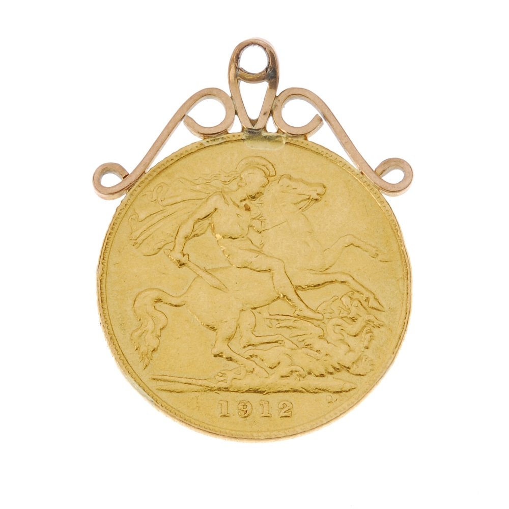 A George V half sovereign, dated 1912, suspended from a