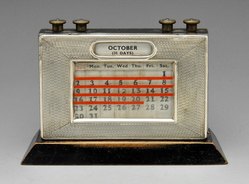 A George V silver mounted desk calendar.