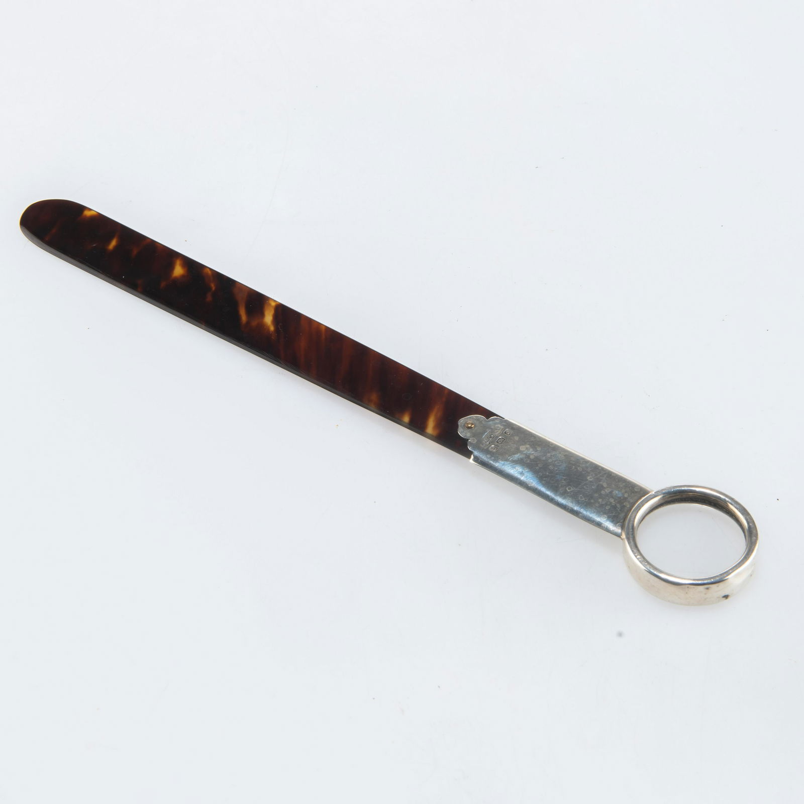 A GEORGE V SILVER-MOUNTED TORTOISESHELL PAGE TURNER