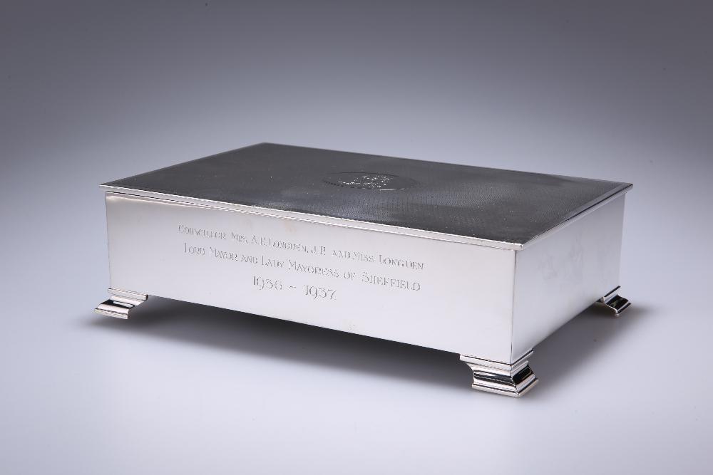 A GEORGE VI SILVER SCROLL BOX by Mappin & Webb,