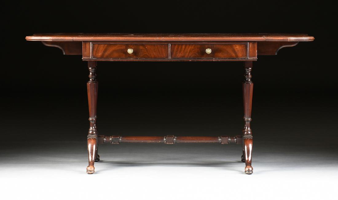 A GEORGIAN STYLE MAHOGANY DROP LEAF LIBRARY TABLE,