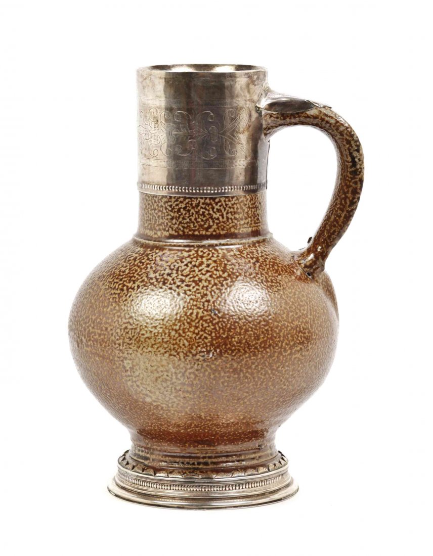 A German Salt-Glazed Silver-Mounted Stoneware Tigerware