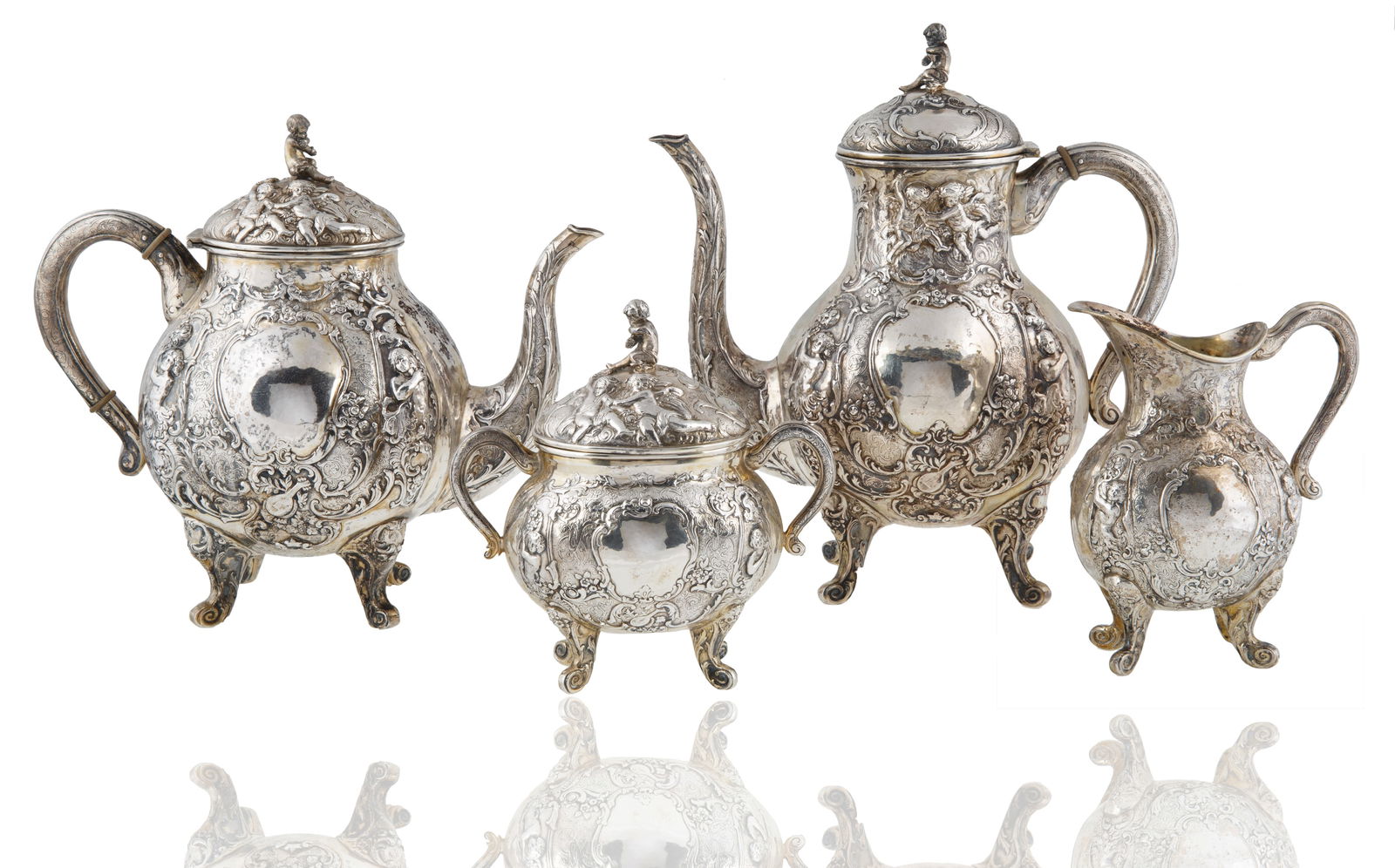 A GERMAN SILVER FOUR PIECE TEA SET, AFTER 1886