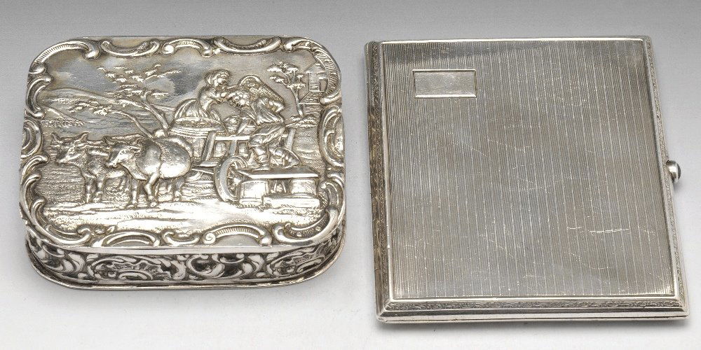 A German silver snuff box and a continental cigarette