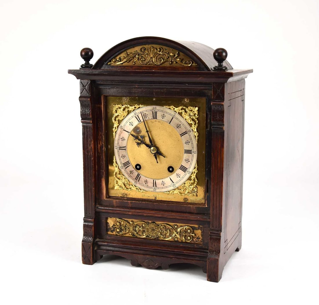 A German 'Ting Tang' oak bracket clock