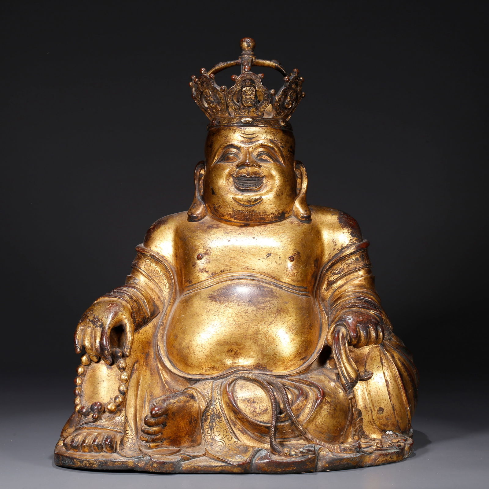 A GILDED BRONZE MAITREYA BUDDHA STATUE
