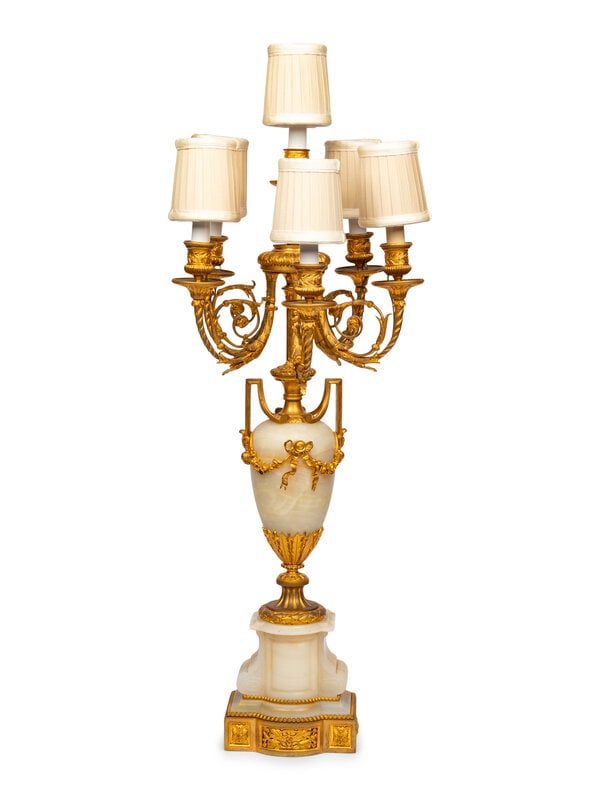 A Gilt Bronze Mounted Alabaster Six-Light Candelabrum