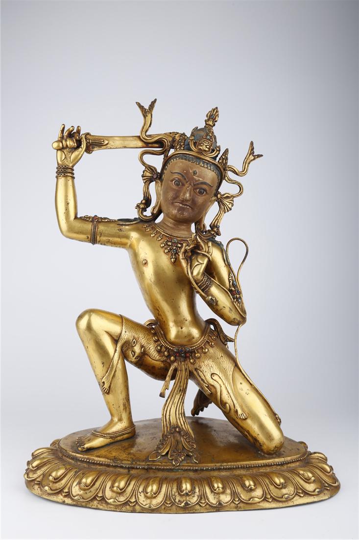 SoldA TIBETAN GILT BRONZE ACALANATHA BUDDHA STATUE.Tibetan Gilt Bronze Acalanatha Buddha Statue.See Sold Price