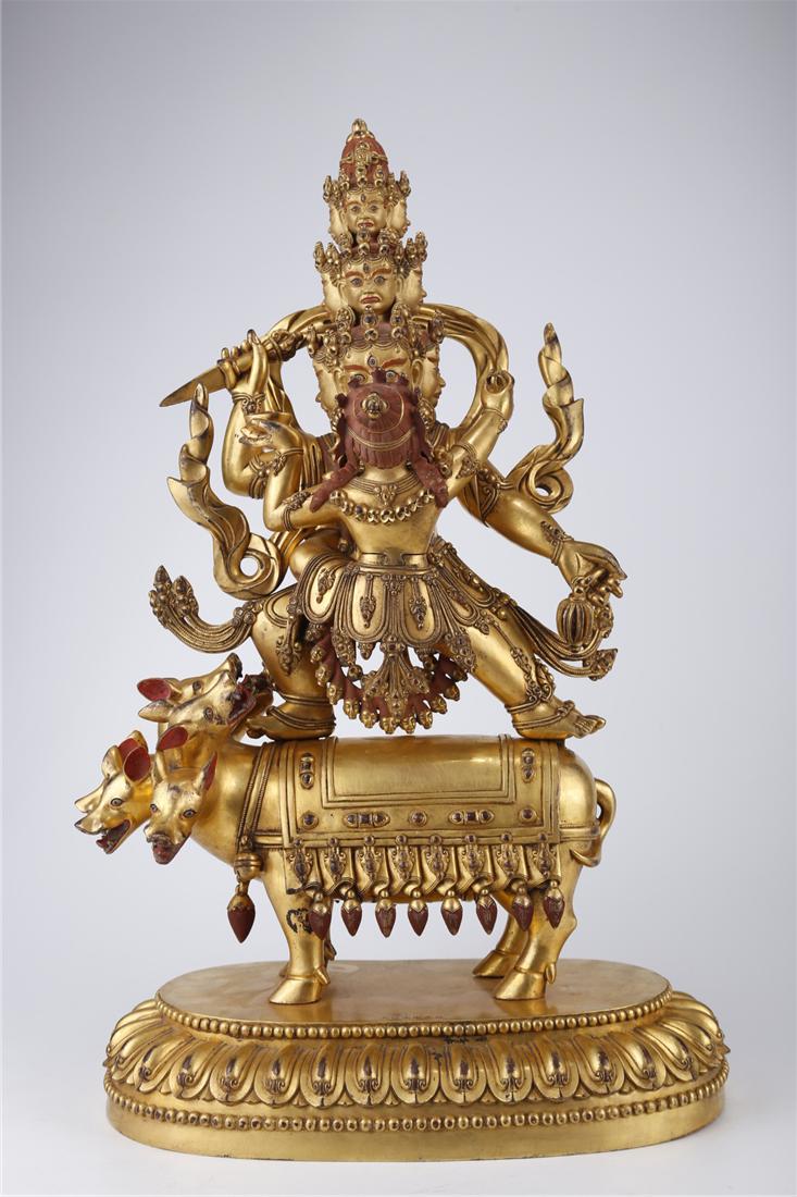 A GILT COPPER HEVAJRA BUDDHA STATUE