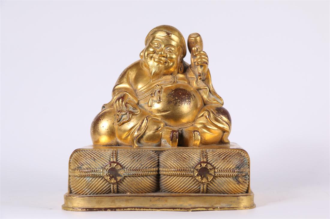 A GILT COPPER OLD MAN BUDDHA STATUE.