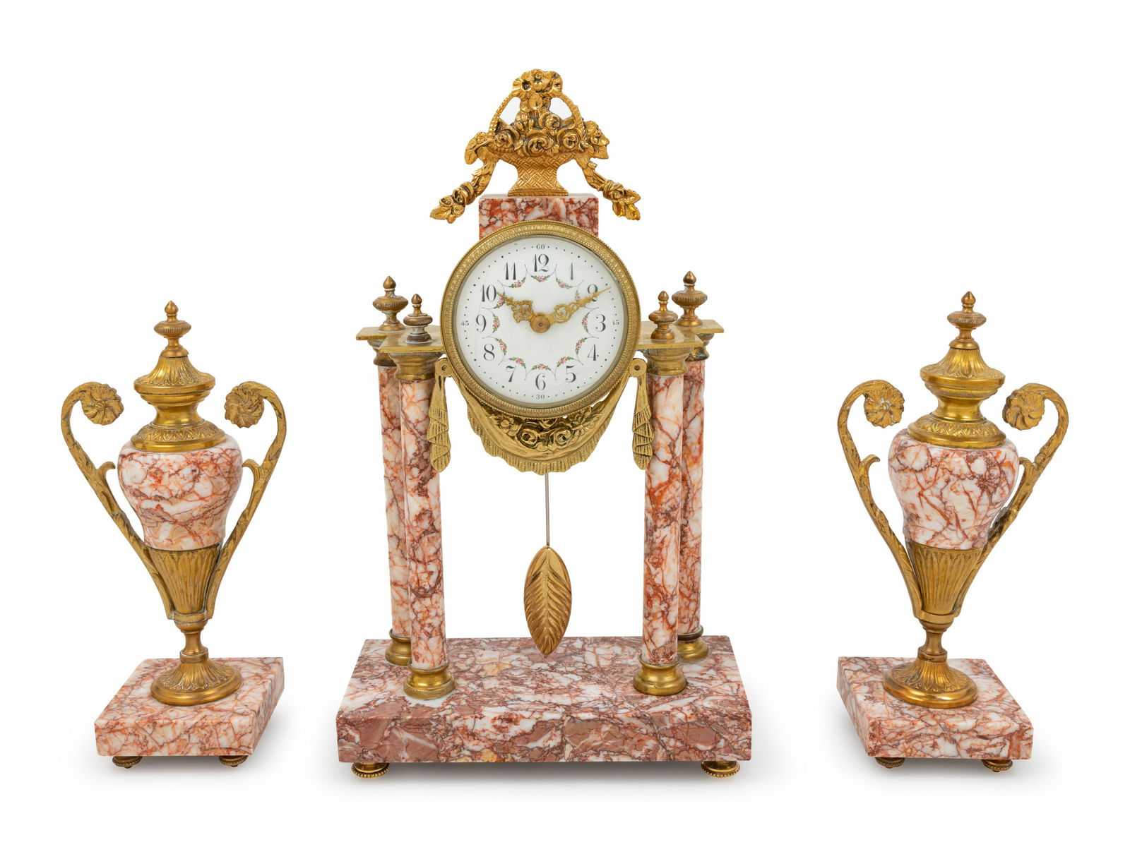 A Gilt-Metal Mounted Marble Three-Peice Clock