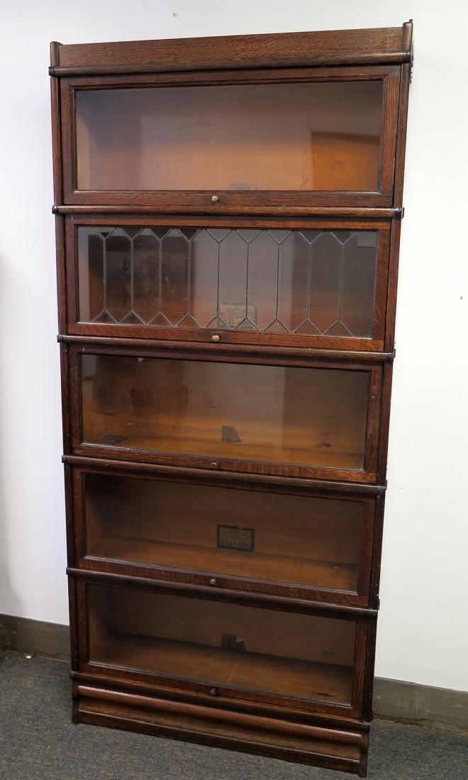 A GLOBE WERNICKE FIVE STACK BOOKCASE WITH LEADED DOOR