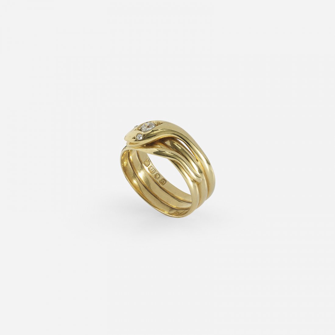 A gold and diamond snake ring