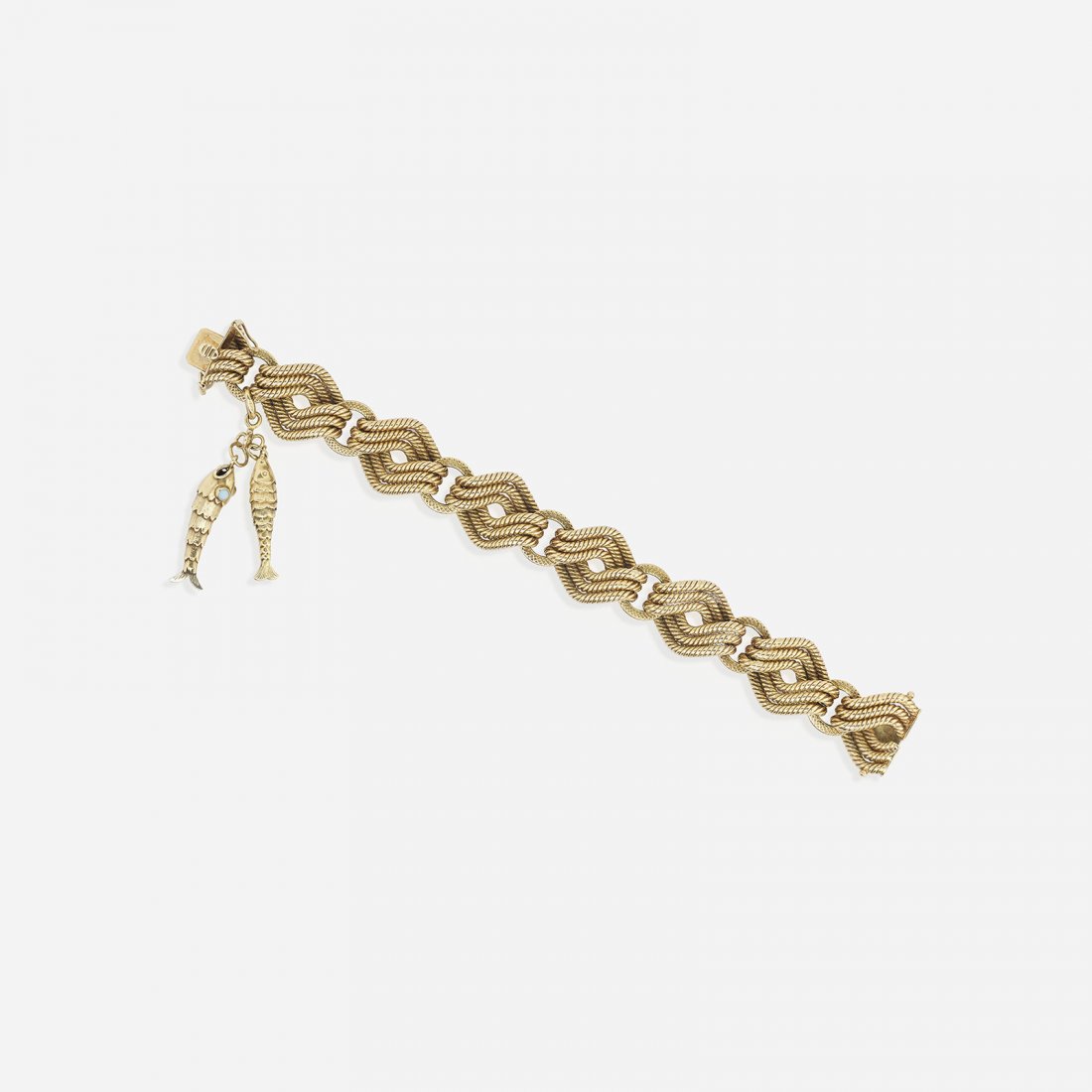 A gold bracelet with fish charms