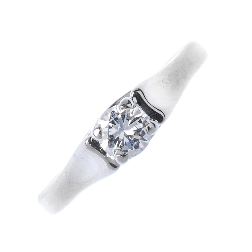A gold diamond single-stone ring.