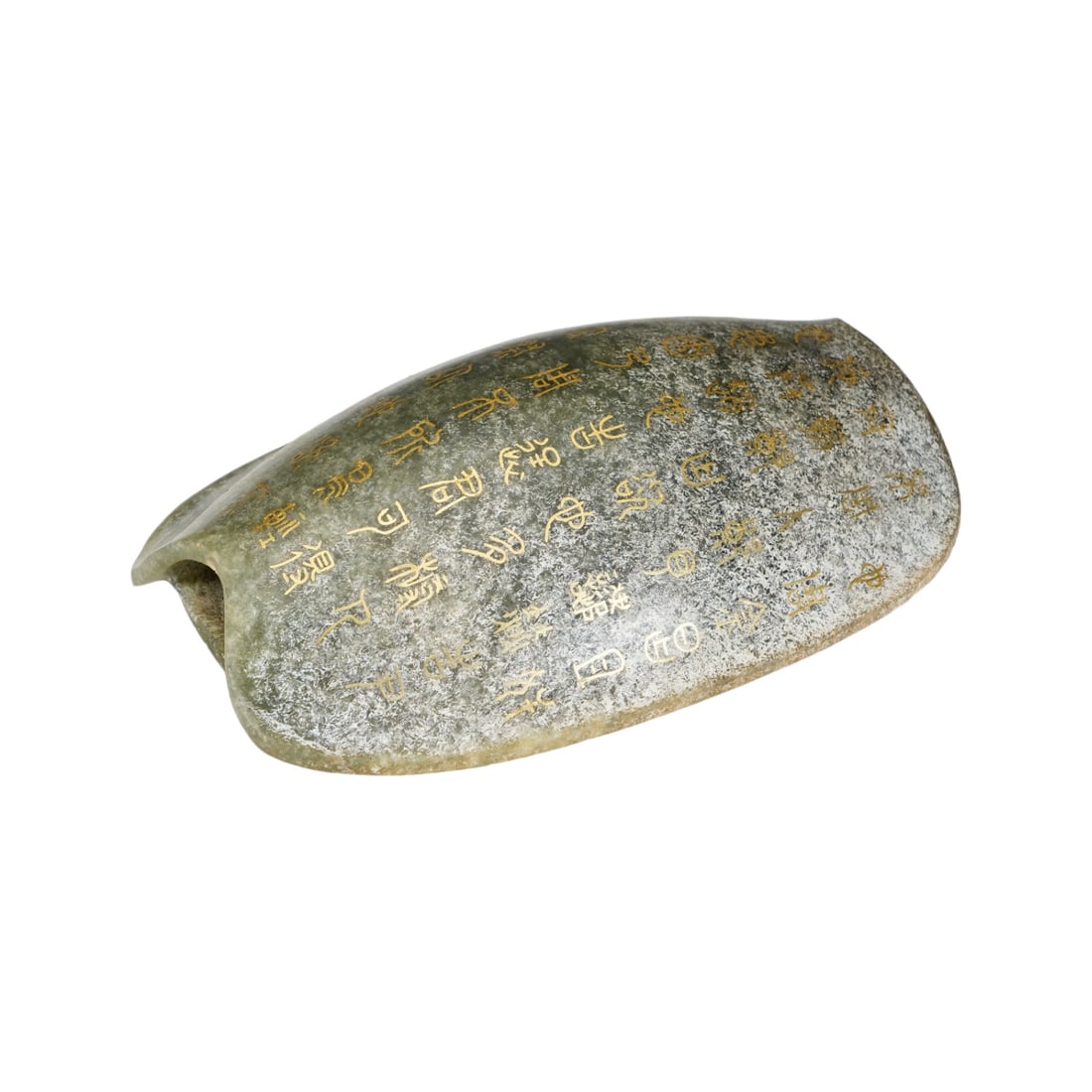 A GOLD INLAYING JADE INSCRIBED SHELL