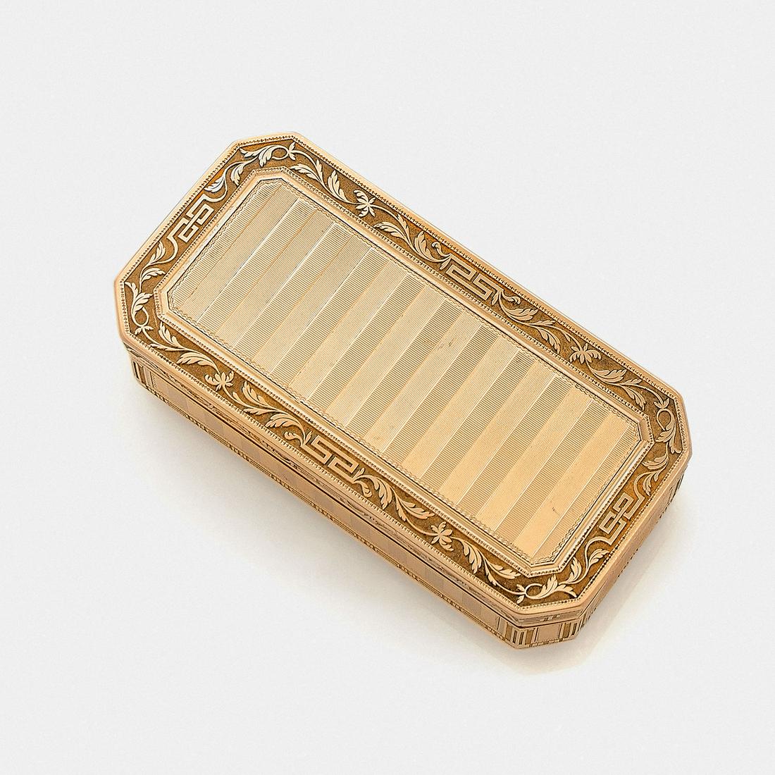 Cartier New York 14K Gold & Enamel Cigarette CaseFeb 26, 2026A LOUIS XV JEWELED VARI-COLOR GOLD SNUFF-BOX MARK OF LOUIS ROUCEL, PARIS, 17738 hrs LeftEngland circa 1820 A George III 14 carat gold and moccha stone snuff box5 days LeftA George IV silver-gilt and gold mounted snuff box Alexander J Strachan, London 1824A LOUIS XVI VARI-COLOR GOLD SNUFF-BOX PARIS, 1789, MAKER'S MARK UNCLEAR8 hrs LeftA LOUIS PHILIPPE RUBY-MOUNTED GOLD SNUFF-BOX MARK OF JOSEPH-NAPOLEON YVOREL, PARIS, 1834-18388 hrs LeftCartier 14K Gold BoxFeb 24, 2026Cartier (Paris) 9K Yellow Gold Cigarette Case, Mid 20th C., W 3.25" L 5.25" 196 g6 days LeftA Russian 84 Silver Cigarette Box3 days LeftGold British B&S Cigarette Case Over 162 GramsFeb 22, 2026A SWISS PASTE-SET AND ENAMELED GOLD PRESENTATION SNUFF-BOX FOR THE OTTOMAN MARKET CIRCA 1840-608 hrs LeftEuropean Gold-Plated Sterling BoxFeb 24, 2026A 15 carat gold and diamond set cigar case makers mark rubbed, probably by E E Thompson & Sons L...Jean-Jacques Prevost 1766 18K Gold Floral Jewelry Box3 days LeftA LOUIS XV GOLD SNUFF-BOX MARK OF JEAN DUCROLLAY, PARIS, 17408 hrs LeftAN AUSTRIAN SILVER BOX4 days Left