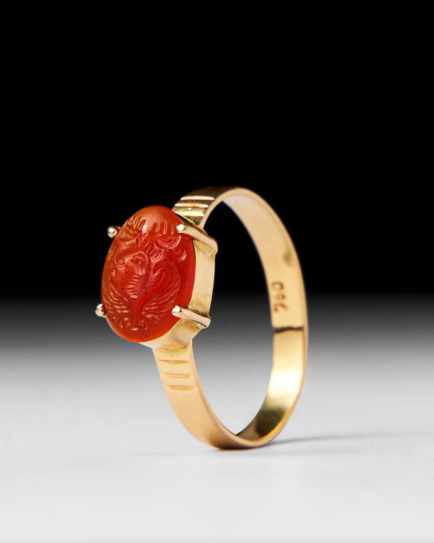 A GOLD RING WITH A ROMAN AGATE INTAGLIO